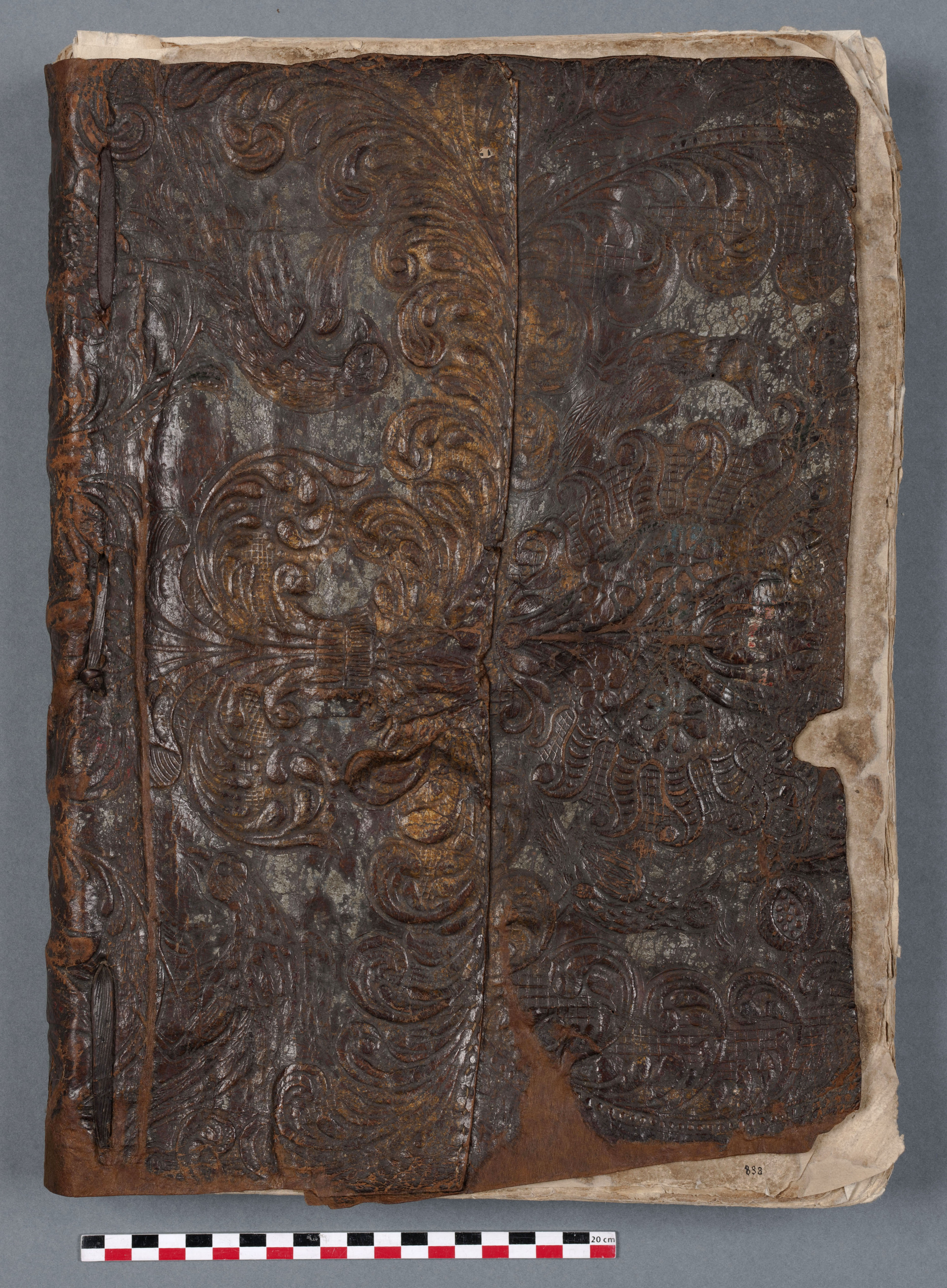 Incunable recouvert de cuir doré - avant traitement
